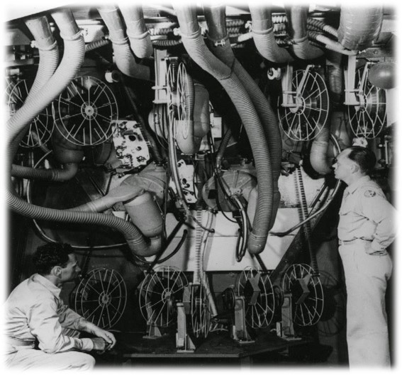 Parte estrutural de uma câmera restaurada que utilizava o sistema Cinerama é mostrada acima.