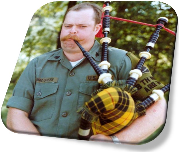 Sargento Duncan C. MacQueen, tocando um dos vários instrumentos que domina com maestria.