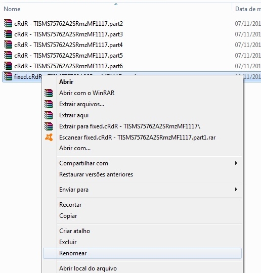 07 – Clicar com botão esquerdo do mouse em cima da parte recuperada (fixed. ….parte 1) > No ‘drop down’ clica em Renomear